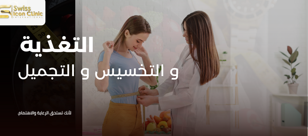 تستخدم مركز Swiss icon clinic أحدث التقنيات العلمية وأكثرها تقدمًا في المجالات الطبية لمجرد إعطاء كل سيدة الشكل الذي تتطلع إليه تعتمد على تناول مجموعة متنوعة من الأطعمة التي تحتوي على العناصر الغذائية التي يحتاجها الجسم للحفاظ على صحته، بما في ذلك البروتينات، الكراهيدرات، والدهون والماء والفيتامينات والمعادن، والتغذية مهمة لجميع فئات المجتمع، لذلك سنتعلم معًا كيفية الحصول على التغذية المناسبة وفقدان الوزن . نحن نعمل معك عن كثب حتى تتمكن من تحقيق أهدافك. لدينا برنامج تدريجي يسمح لك بالحصول على أقصى فائدة من الخدمات التي نقدمها